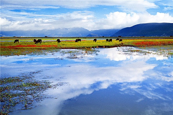 入秋的香格里拉處處皆美景,對來自大城市的游客來說,整個香格里拉仿佛就是一個天然畫卷,藍天、白云、藏房、金色的樹葉和肥壯的牛羊,讓人目不暇接。