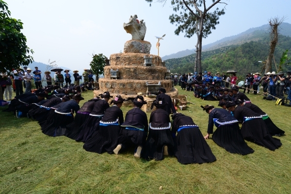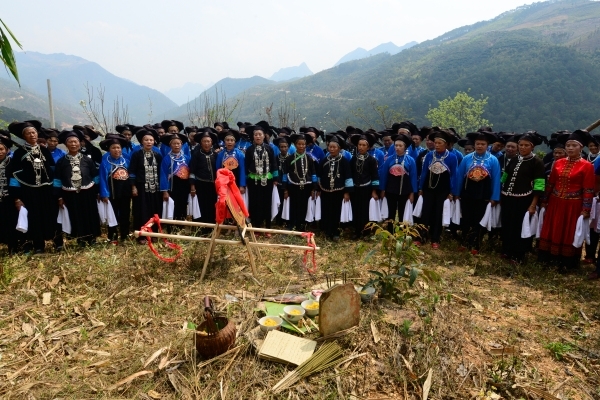 農歷二月初一是祭祀日,女人們在演唱傳統祭太陽古歌
