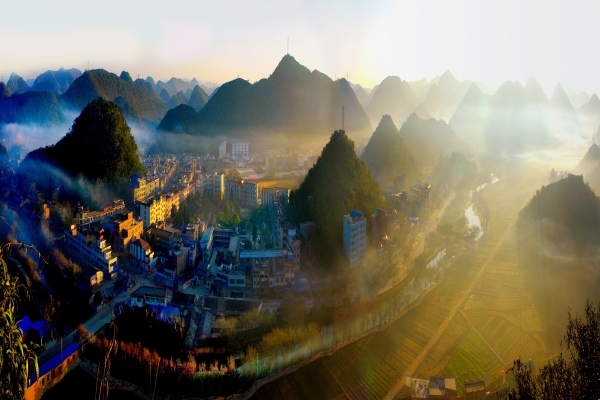 薄霧籠罩下的 “高原小桂林”還未完全蘇醒,已經(jīng)有不少遠道而來的游客在等待觀賞民族特色風情美食展及“生態(tài)民風?非遺文化”展演等活動。