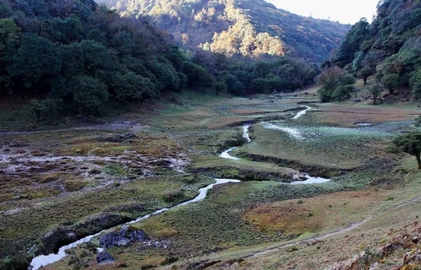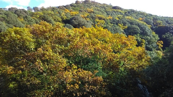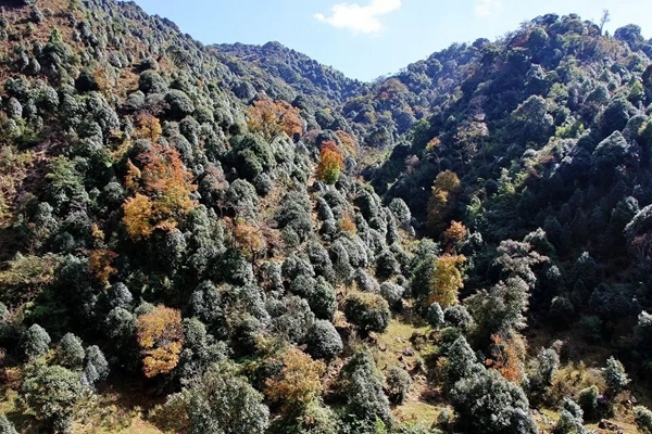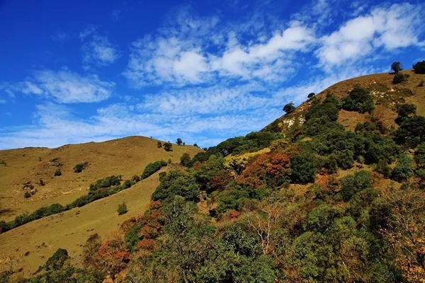 離開小城的喧鬧,來到群山環(huán)抱,即將秋色殆盡的苤菜壩。藍藍的天,白白的云,潺潺的小溪,紅紅的楓葉,茂密的樹林……迷人的五彩秋色,會讓你情不自禁地戀上這里。