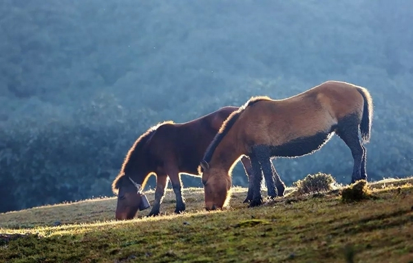 馬兒走在柔軟的草地上,享受這悠閑的秋日。