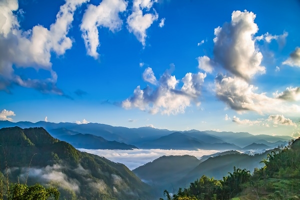 冬天的小城——恩樂還在厚厚的云被下沉睡,大夢的車在夜的暮紗里穿行,車窗外遠處的車燈劃出條條彩斑。四十分鐘后我們到山頭天亮了,由于多云天氣,看云海落空了。無際的山間沒有往日滿邊的云海,只是壩子上有少許的云,既然來了也就當“云湖”看了。