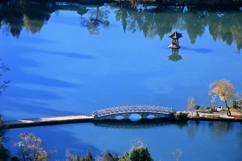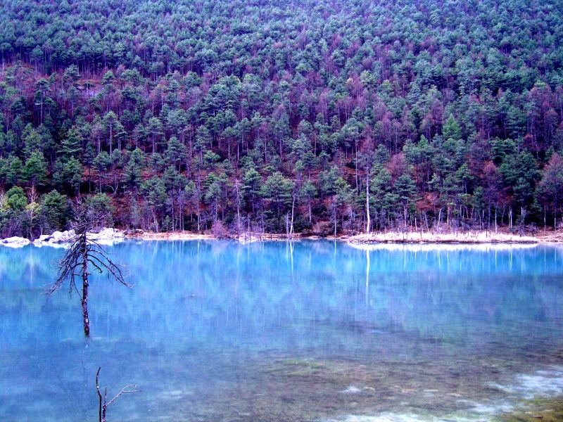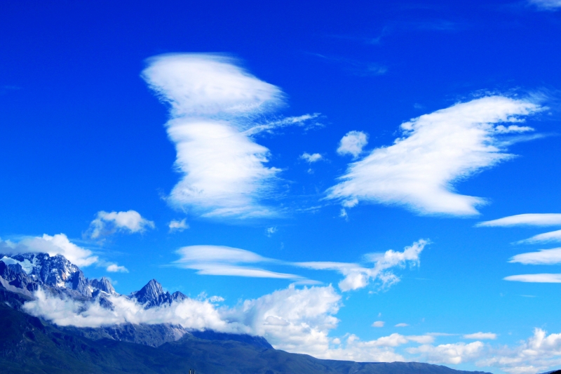 冬日的麗江,陽光燦爛,晴朗湛藍的高空萬里無云,像碧玉一樣澄澈。