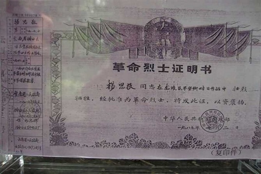 1987年12月,經中華人民共和國民政部批準為革命烈士