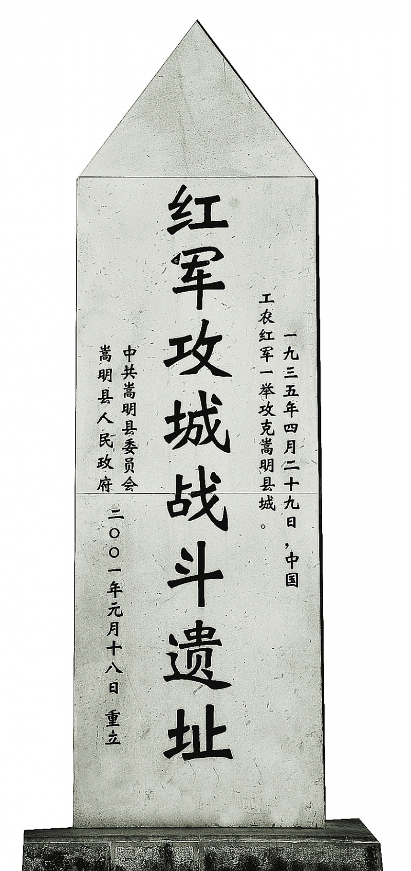 1935年4月29日,紅軍的先頭部隊(duì)于29日正午時(shí)分兵臨嵩明城下,在普沙河一帶做好戰(zhàn)斗準(zhǔn)備,利用有利地形攻打縣城。僅用1個(gè)小時(shí)的時(shí)間,紅軍就攻占了嵩明縣城。這場(chǎng)攻城戰(zhàn)斗,打死打傷敵人10余人,俘虜100余人,繳槍95支,子彈2萬(wàn)多發(fā),并繳獲了一批物資。紅軍一名連長(zhǎng)和一名戰(zhàn)士負(fù)傷,部隊(duì)撤離時(shí)交由城內(nèi)老百姓家寄養(yǎng),后被國(guó)民黨反動(dòng)派殺害。