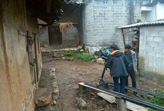 機(jī)組人員在彝良奎香寸田拍攝紅二軍團(tuán)指揮部舊址