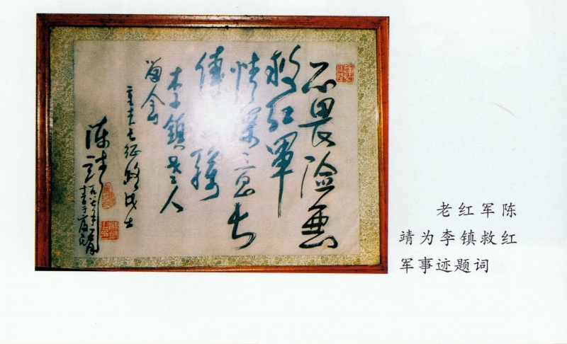 1987年5月12日老紅軍戰士陳靖為李鎮救紅軍事跡題詞(中共富民縣委黨史研究室提供)