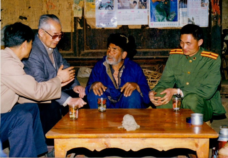 1987年4月,楊秀山將軍(左二)看望李鎮(左三)(中共富民縣委黨史研究室提供)