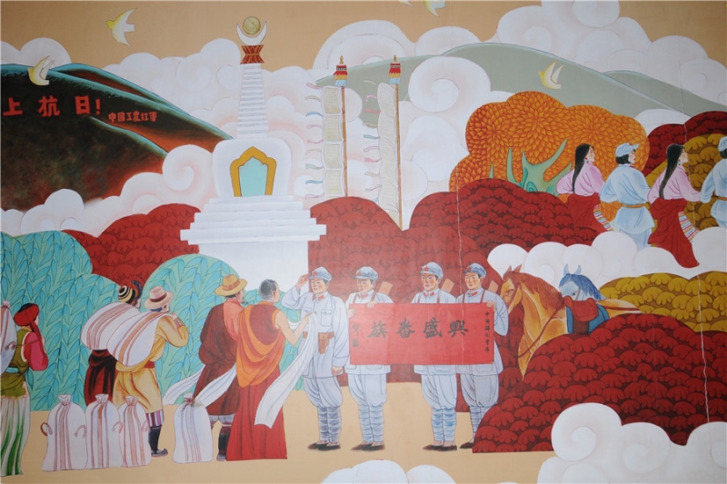 伴隨《十送紅軍》的音樂,一幅幅紅二、六軍團經過香格里拉時的情景壁畫在迪慶藏族自治州紅軍長征博物館的長廊里鋪開,八十年前迪慶各族群眾與紅軍在雪域迪慶高原譜寫的動人故事又再次呈現在了眼前——