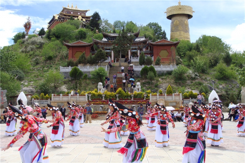 1936年4月,紅二、六軍團在賀龍、任弼時、關向應、肖克、王震的領導下,渡過金沙江,翻越雅哈雪山,進入中甸(今香格里拉市)藏族聚居區,并在中甸停留休整。期間,松贊林寺八大康參、廣大僧侶和各族群眾積極籌措糧草及物資,支持紅軍北上抗日,賀龍總指揮親書“興盛番族”錦幛贈予寺廟,留下了軍民團結、民族團結的佳話,成為了迪慶這片雪域高原最為動人的紅色記憶。