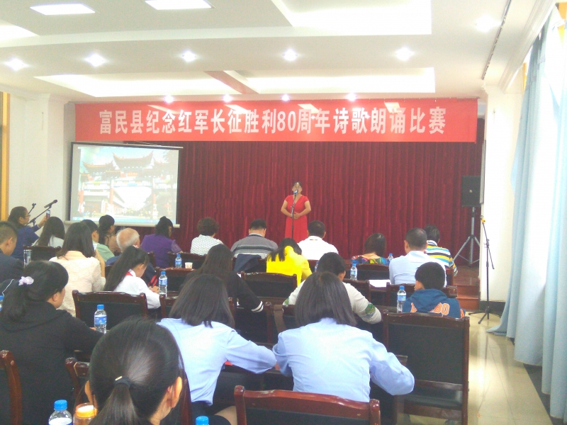 近日,富民縣舉辦了“紀念紅軍長征勝利80周年詩歌朗誦比賽”,以弘揚長征精神為主題,用詩歌朗誦的形式追憶紅軍,緬懷先烈。在弘揚主旋律,傳播正能量中,讓長征精神轉化為加速實現全縣人民富民強縣美好夙愿的強大動力,轉化為奮發有為,敢于擔當的創業動力源。