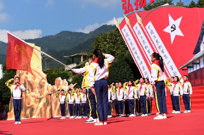 紀(jì)念大會上,解放軍方隊(duì)、共產(chǎn)黨員方隊(duì)、共青團(tuán)員方隊(duì)和少先隊(duì)員方隊(duì)先后走上前臺,面對人民解放軍軍旗、中國共產(chǎn)黨黨旗、共青團(tuán)團(tuán)旗和少先隊(duì)隊(duì)旗進(jìn)行莊嚴(yán)宣誓。