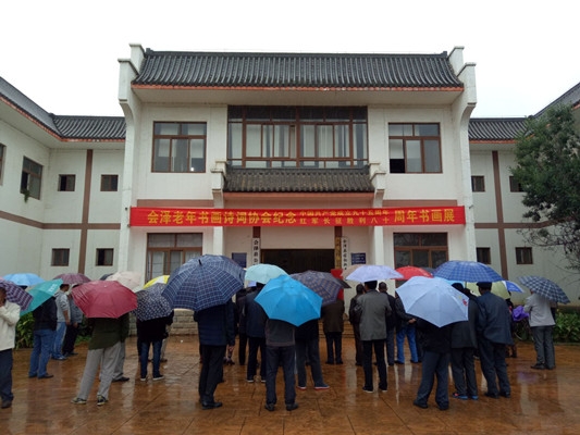 群眾冒雨前來觀看紀念紅軍長征勝利80周年書畫展