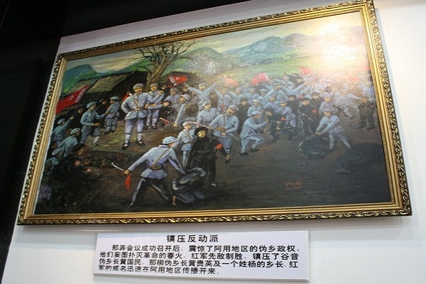 1937年2月12日,敵廣富獨立營掃蕩花甲地區,屠殺殘害紅軍游擊隊家屬36人,割下10余人的頭吊在大樹上示眾。花甲鄉的汪氏田,因不透露紅軍游擊隊第二大隊副隊長的丈夫汪富興和紅軍隊伍的下落,被國民黨軍把她及不滿一歲的孩子一起捆綁拉到花甲關押。為使她屈服,分別把她押到花甲那耶、那能、富州等地“陪殺”了六次之后又送到富州關押,但她意志堅定,最終未說出汪富興和紅軍的下落。由于受到長期的關押折磨,她的孩子因體弱離開了人世。此外,國民黨軍隊還利用所謂的“匪殺匪”手段,逼迫自家人互相殘殺,威逼弟殺兄、兒殺父,如不動手,全家人都被殺光,慘絕人寰。