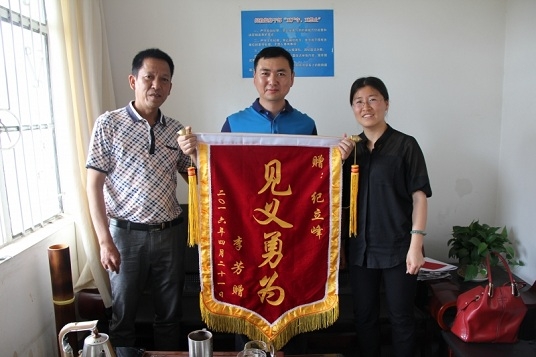 近日,思茅區紫翠娟百貨煙酒店的老板娘李芳拿著一面“見義勇為 助人為樂”的錦旗專程來到思茅區紀委監察局,懷著感激之情將錦旗送給了紀檢監察干部紀立峰,對他見義勇為、勇追小偷的行為表示深深的謝意。