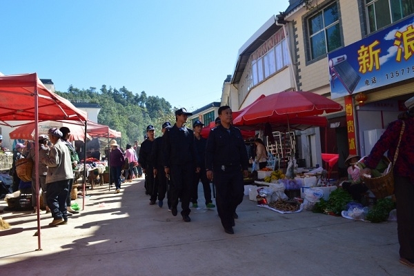 楊兆虎同志所在的溫泉派出所河東農村警務室,是一個晴天一身灰,雨天一身泥的地方。溫泉鄉有光山、松山、聯席、新河、大九甲5個村民委員會、78個村民小組、2496戶農戶10768人,轄區總面積145平方公里,警務室設立在松山村。松山集市是溫泉鄉河東5村一帶最為熱鬧的一個山村集市,因遠離集鎮、交通不便且毗鄰臨滄市鳳慶縣的兩個鄉鎮,一旦發案,民警在短時間內很難到達現場。