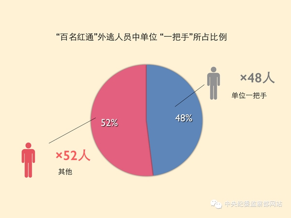 縱觀“百名紅通”人員名單,“一把手”的比例則為48%。