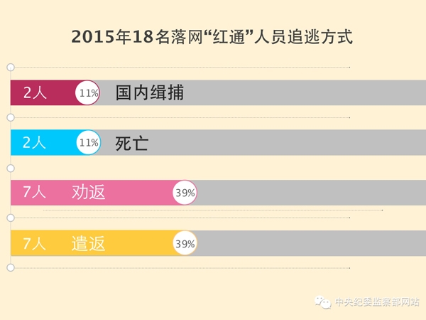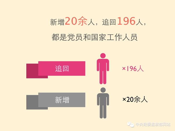 以前都是跑出去的多,追回來的少。2015年情況大不一樣了,跑出去的少了,追回來的是跑出去的數倍。2015年1-11月,追回來的黨員和國家工作人員有196人,新增外逃人員20余人。