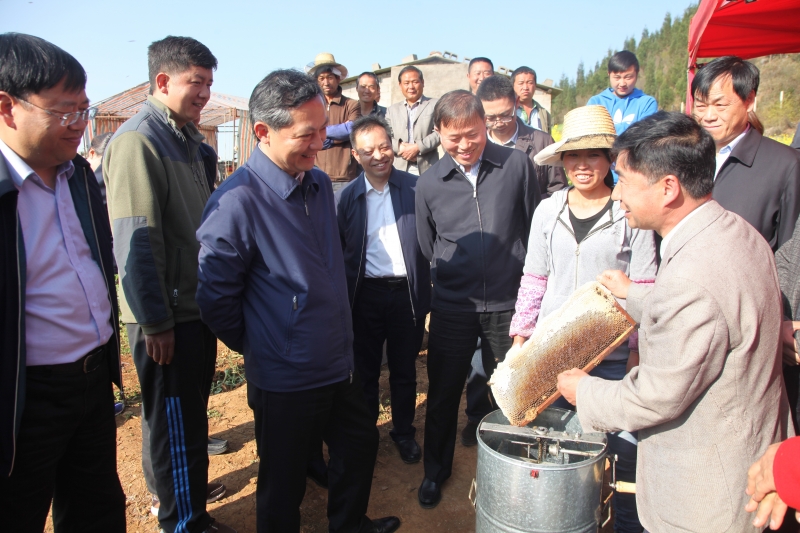 張碩輔先后深入羅平縣板橋鎮金雞村委會、長底布依族鄉坡腳居民小組,師宗縣五龍壯族鄉大廠村委會小法塊村,陸良縣小百戶鎮,云南普瑞生物制藥有限公司等地,實地對農村基層黨風廉政建設、村兩委換屆選舉、扶貧攻堅、美麗宜居鄉村建設及水利改革、非公企業發展等進行調研。