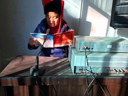 大興鎮牛洪村委會副總支書記用哈尼語通過“村村響”播講《準則》和《條例》