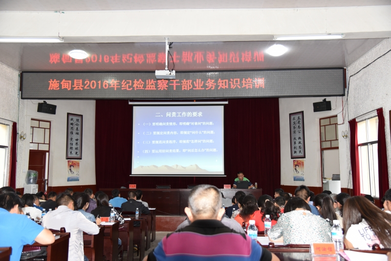 營造學習《問責條例》的良好氛圍。縣紀委、縣委宣傳部牽頭策劃,相關部門密切配合,制定宣傳工作方案,利用施甸新聞、施甸通訊、施甸手機報等多種傳媒進行學習。征訂《問責條例》讀本3700本;依托縣紀委、縣委組織部開展的紀檢監察干部培訓班1期120人、新提拔鄉科級領導干部培訓班1期41人、鄉、村干部培訓班2期394人的學習培訓上強調執紀問責,加大基層領導干部對《問責條例》的認識和學習貫徹,為嚴肅黨內問責工作營造良好學習氛圍。