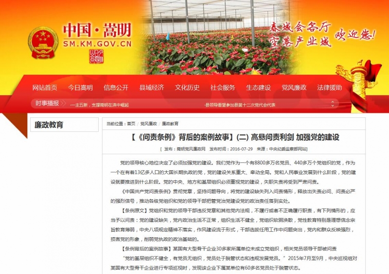 互聯網+門戶網站,學習更全面。 在嵩明黨風廉政網原文轉載問責條例內容,及時更新相關解讀文章、跟進各單位學習條例的情況,展現學習活動帶來的新風、新貌、新變化;與縣委宣傳部共同策劃,制定宣傳報道工作方案,要求全縣各級各部門門戶網站、內部網站及時轉載人民日報、新華社、中央紀檢監察部網站等主流媒體刊發的消息稿、系列評論員文章、權威解讀等,牢牢把握輿論導向。
