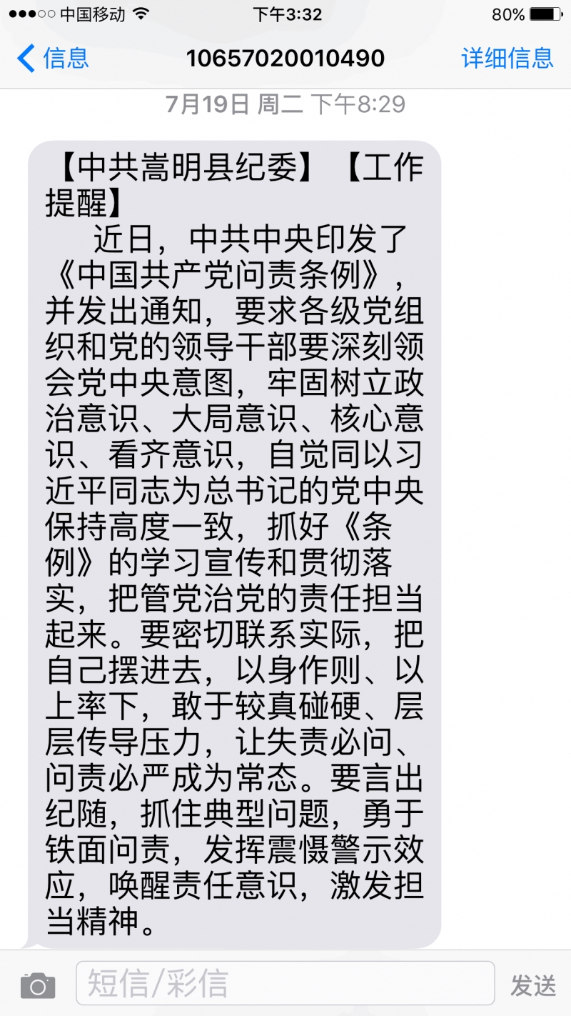 利用手機短信推送《問責條例》學習要求