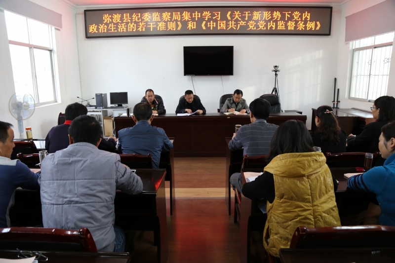 11月7日,彌渡縣紀(jì)委召開(kāi)專題會(huì)議,組織全體干部職工原文學(xué)習(xí)《關(guān)于新形勢(shì)下黨內(nèi)政治生活的若干準(zhǔn)則》和《中國(guó)共產(chǎn)黨黨內(nèi)監(jiān)督條例》。