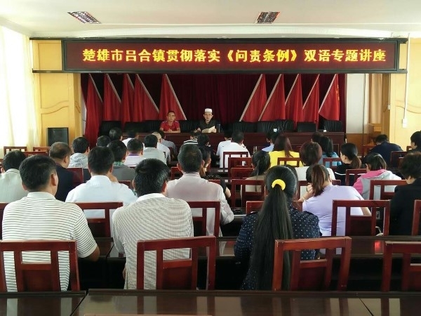 自《問責(zé)條例》頒布以來,楚雄市結(jié)合當(dāng)?shù)厣贁?shù)民族眾多的實際,將《問責(zé)條例》充分融入到民族文化當(dāng)中,用少數(shù)民族語言廣泛宣傳《問責(zé)條例》。截至目前,全市共舉辦少數(shù)民族語言宣講46場,受教育人數(shù)達(dá)5000余人次。