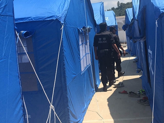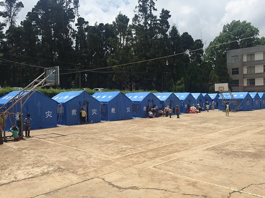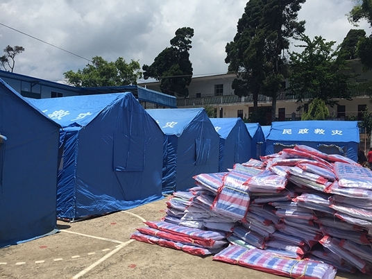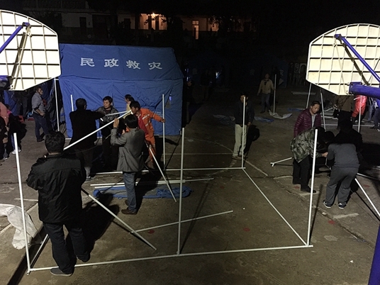 地震發生當晚,當地干部群眾共同搭建帳篷