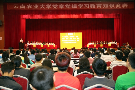 5月5日晚,云南農(nóng)業(yè)大學(xué)西校區(qū)體育館附館內(nèi)燈火通明,氣氛認(rèn)真而熱烈,主席臺(tái)上,參賽選手流利的回答,贏得了場(chǎng)下觀眾贊許的目光和陣陣掌聲,這是云南農(nóng)業(yè)大學(xué)黨委組織的黨章黨規(guī)知識(shí)競(jìng)賽決賽正在進(jìn)行中。