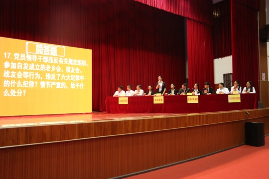 開展黨章黨規(guī)學(xué)習(xí)教育知識(shí)競(jìng)賽。4月印發(fā)了《關(guān)于在全校組織開展黨章黨規(guī)學(xué)習(xí)教育知識(shí)測(cè)試競(jìng)賽活動(dòng)的通知》,在全校以黨委、總支為單位,組織開展黨章黨規(guī)學(xué)習(xí)教育知識(shí)競(jìng)賽活動(dòng)。每個(gè)黨委、黨總支(離退休黨委除外)各組織1個(gè)代表隊(duì)參加競(jìng)賽,全校共組織了21支參賽隊(duì)。