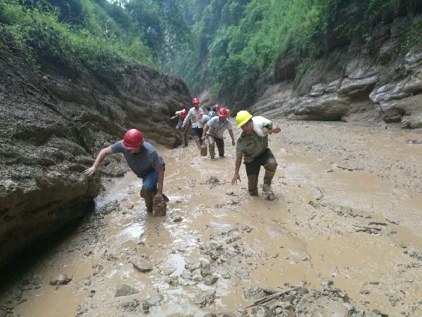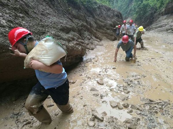 連日來,永善縣黃華鎮(zhèn)轄區(qū)受持續(xù)降雨影響,山洪暴漲,轄區(qū)內(nèi)多處山體出現(xiàn)滑坡和泥石流險情,導(dǎo)致14個村(社區(qū))不同程度農(nóng)作物受損、交通中斷、房屋垮塌,近2萬余群眾因為泥石流導(dǎo)致交通中斷,出行困難,食物匱乏,群眾生命財產(chǎn)安全受到嚴重威脅。6月30日,黃華鎮(zhèn)部分黨政班子成員、部分鎮(zhèn)村紀檢干部以及黃華社區(qū)12名無職黨員組成救援隊伍,向受災(zāi)嚴重的村組挺進。一路上,山上有滾石、腳下有稀泥,隨時都有可能被滾石砸中、掉進淤泥的可能,但大家都鉚足了勁的往前趕路,因為,災(zāi)民的生命財產(chǎn)安全比什么都重要!走不動就用爬,上不去就搭人梯、獨木橋。就這樣,救援隊伍肩扛手提步行近兩小時將大米、食用油等生活用品和部分常用藥品送到了受災(zāi)群眾手中。