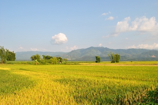 15萬畝糧田有如萬頃碧波,鋪展在廣闊的壩子上,每到拔節揚花,清香四野,而到收獲的時節又是一片金黃。