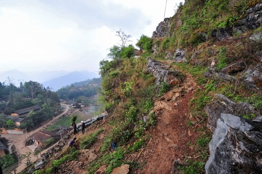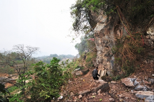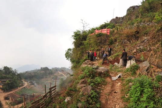 西疇縣巖頭村,因地處大山深處的100米懸崖峭壁之上而得名。在村民小組長李華明的帶領下,全村15戶群眾堅守苦干了整整12年,在進村必經的懸崖上硬生生的鑿出一條1公里進村道路,從4公里以外的地方引來了自來水,產業逐步發展起來,在與貧困的抗爭中贏得了主動。