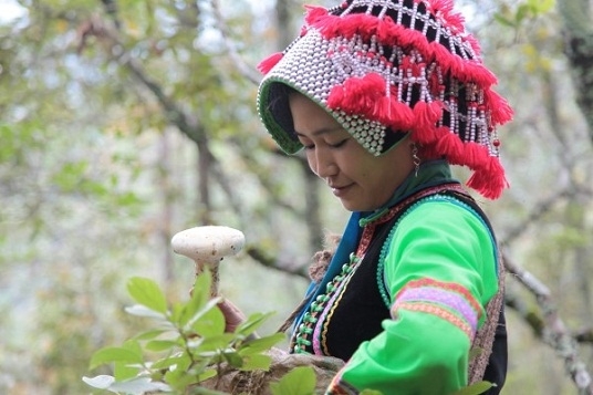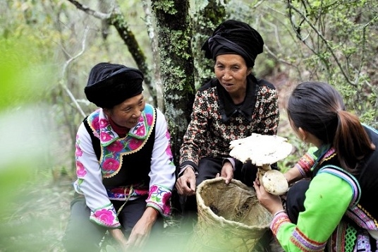 彝家少女上山拾菌
