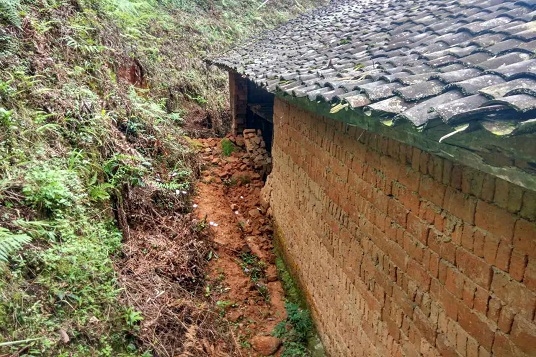 連日的陰雨造成了一起小型塌方,沖進了舊城鎮東丙村新麻撒的一戶建檔立卡戶家中。