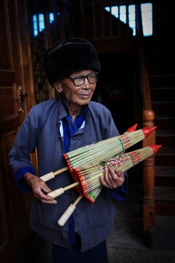 幾十年前,滎陽村每一戶人家都會做油紙傘,但是隨著老人們相繼離世,現在全村僅有4戶人家還在制作油紙傘。今年89歲的鄭映海老人就是其中的一位非遺傳承人。