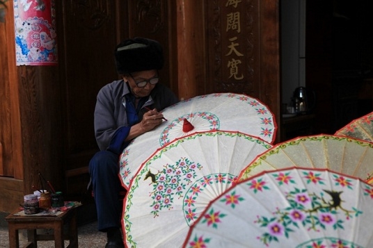 保山市騰沖市固東鎮的滎陽村,離云南省騰沖市城區50多公里,是一個山清水秀的小村子,這個小村子以出產精美獨特的油紙傘聞名。滎陽村過去曾有一片沼澤地,長年生長著許多蘆葦和毛竹,世居在這里的村民就利用蘆葦和毛竹編制紙傘、藤編、竹編等生產、生活用品,并到集市上出售。