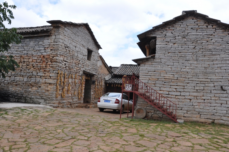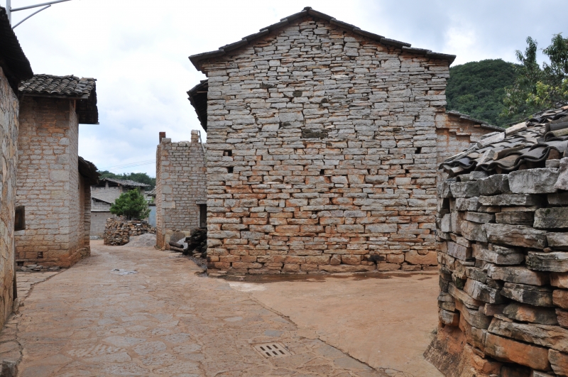 村內(nèi)98%的建筑物都是典型傳統(tǒng)石板房,是一個(gè)全部用本土石頭構(gòu)建的彝寨。石板房、石板瓦、石板牲畜廄、石板路、石墻、石門、石缸等石頭建筑隨處可見。村民世世代代以山上的層石搭屋建房,獨(dú)特的石頭景觀為糯黑石頭寨贏得了“石頭凝固成的村寨”、“石中精靈”等美譽(yù)。