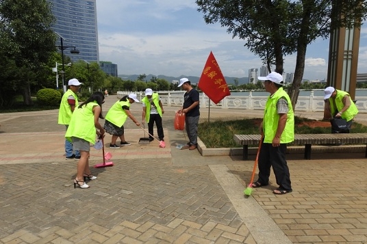 2016年8月8日,文山州紀委監察局15名志愿者參加了文山市臥龍街道大以古社區組織開展的華龍湖環湖區域環境衛生清理活動。
