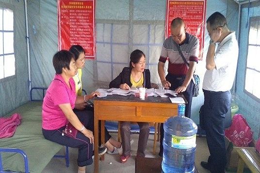 紀檢干部到茅陽社區(qū)集中安置點督查救災工作紀律和救災物資發(fā)放情況