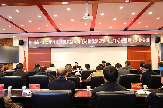 昭通市委書記匯報整改落實情況,昭通市委、市人大常委會、市政府、市政協領導班子成員,市紀委領導班子成員,市中級法院院長、市檢察院檢察長,部分市委和市直國家機關各部委辦局主要負責人,市人大、市政協各委室負責人,市紀委各派出紀工委書記等參加了復查驗收工作匯報暨民主測評會議。