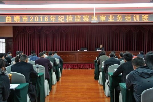 2016年3月11日, 曲靖市紀委舉辦全市紀檢監察機關案件審理業務培訓班,對重新修訂頒布的《中國共產黨廉潔自律準則》和《中國共產黨紀律處分條例》的學習應用和案件審理工作中的常見問題和做法進行了專題輔導,全市分管案審工作的領導、各縣區案審室80余名紀檢監察干部參加了培訓。本次培訓邀請省紀委案審室領導到培訓班講授了《紀律處分條例學習與實踐初探》。