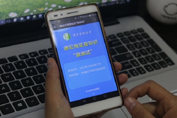 “德宏黨規知識每月‘微測試’開始了,您準備好了嗎?”2017年1月4日,德宏州紀委開通“德宏紀檢監察”微信公眾號“在線測試”平臺,組織全州黨員干部開展黨規知識“微測試”,旨在教育引導全州黨員干部學黨章黨規黨紀,做守紀律、講規矩、知敬畏、明底線的表率。