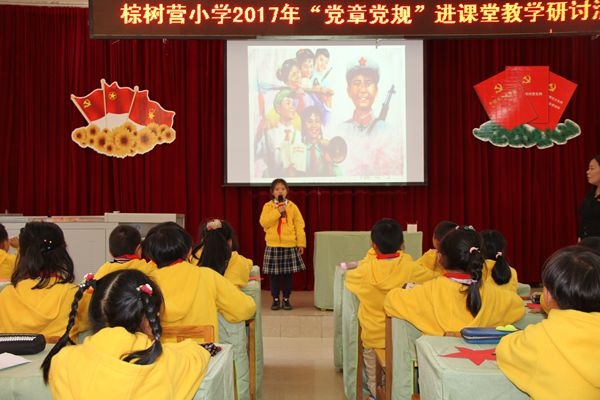 西山區棕樹營小學堅持從學生實際出發,在已有校園文化建設的基礎上,堅持正面教育原則,用優秀傳統文化、革命領袖人物的優秀品格教育影響學生,將廉政教育與思想品德教育相結合,分兩期組織全校師生上了一堂“紅領巾心向黨”的公開課。公開課以講授一堂廉政文化課、學生代表講述心中的英雄、在國旗下宣誓、制作心愿卡為主要內容,形成廉政教育以學校教育為主體、以家庭教育為基礎、以社會教育為依托的良好格局。