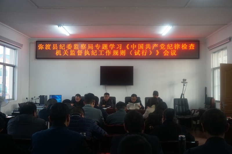 近日,彌渡縣紀委監察局組織干部職工專題學習《中國共產黨紀律檢查機關監督執紀工作規則(試行)》。會上原文組織學習,逐字逐句分析講解,要求紀檢干部要結合工作實際學,領會核心要義,掌握精神實質,學習貫徹好《監督執紀工作規則》。