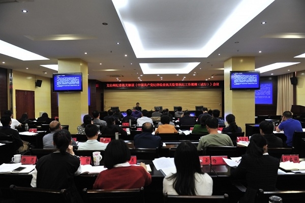 為進一步貫徹執行《中國共產黨紀律檢查機關監督執紀工作規則(試行)》和省紀委實施辦法,規范全州紀檢監察機關監督執紀工作,近日,文山州紀委監察局機關組織全體干部職工對《工作規則(試行)》和省紀委實施辦法進行逐條解讀。