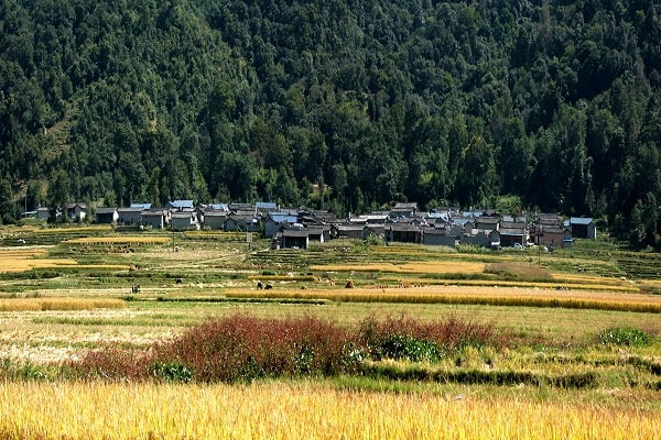 碧綠的山林,金黃的稻田,成群的牛羊的戶撒壩子