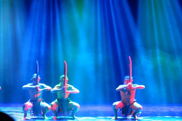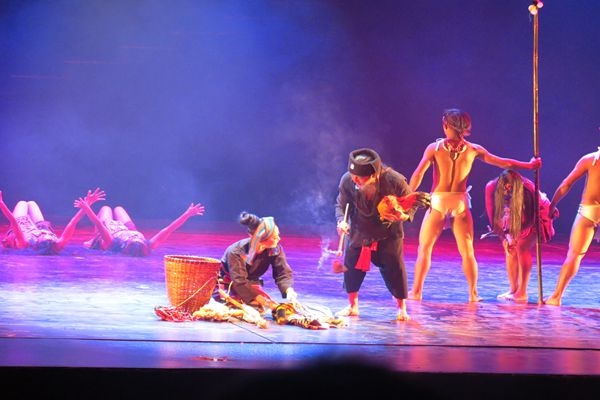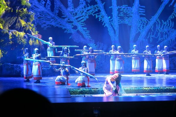通過佤族舞蹈,展示了阿佤人民千百年來熱愛生活、向往美好、與大自然抗爭的民族精神。崖畫、刀耕火種等舞蹈充分展現出佤鄉神奇美麗的自然風情以及深邃厚重的人文風情;拉木鼓、刀舞、木鼓甩發舞等構成的舞蹈,展現了佤族崇善自然、感恩大自然的高尚品格;“接新水”“薅秧歌”“月亮升起來”等舞蹈,展現了阿佤人民用勞動換取富足、勞動是生命延續的技能的場面和感恩自然的高尚品格。